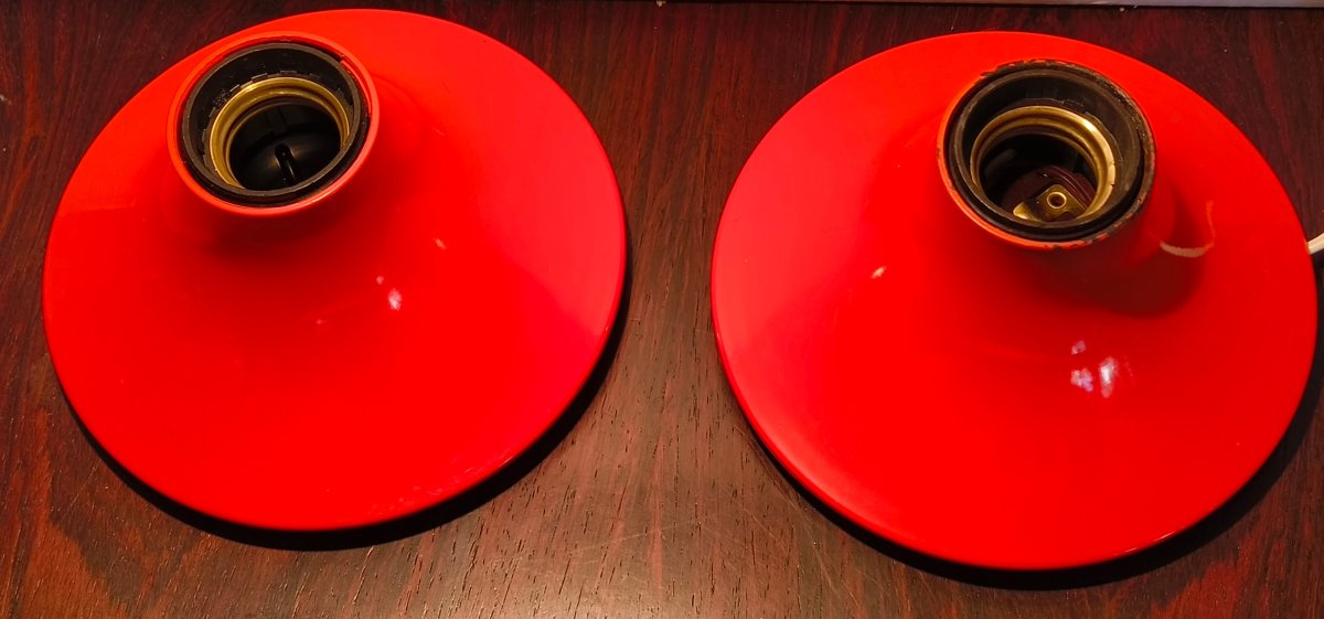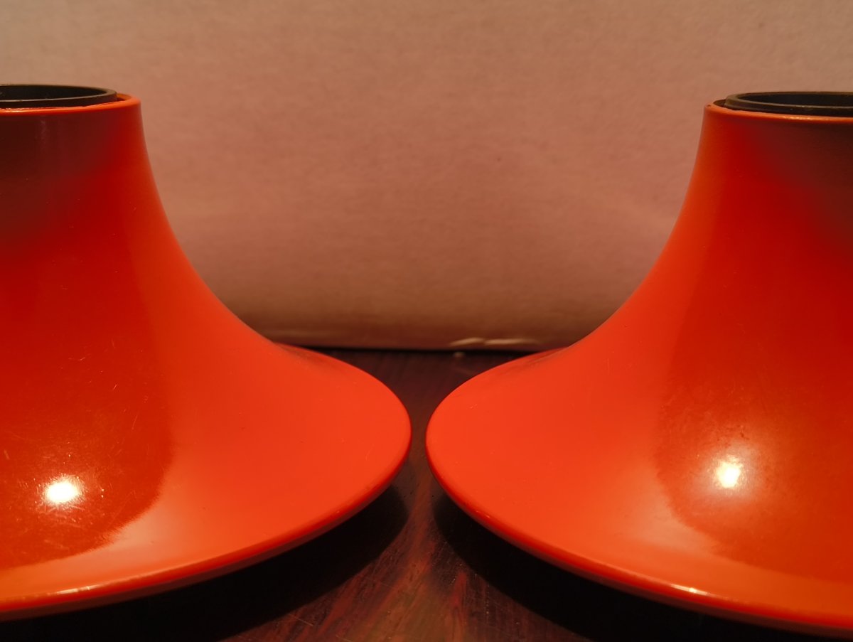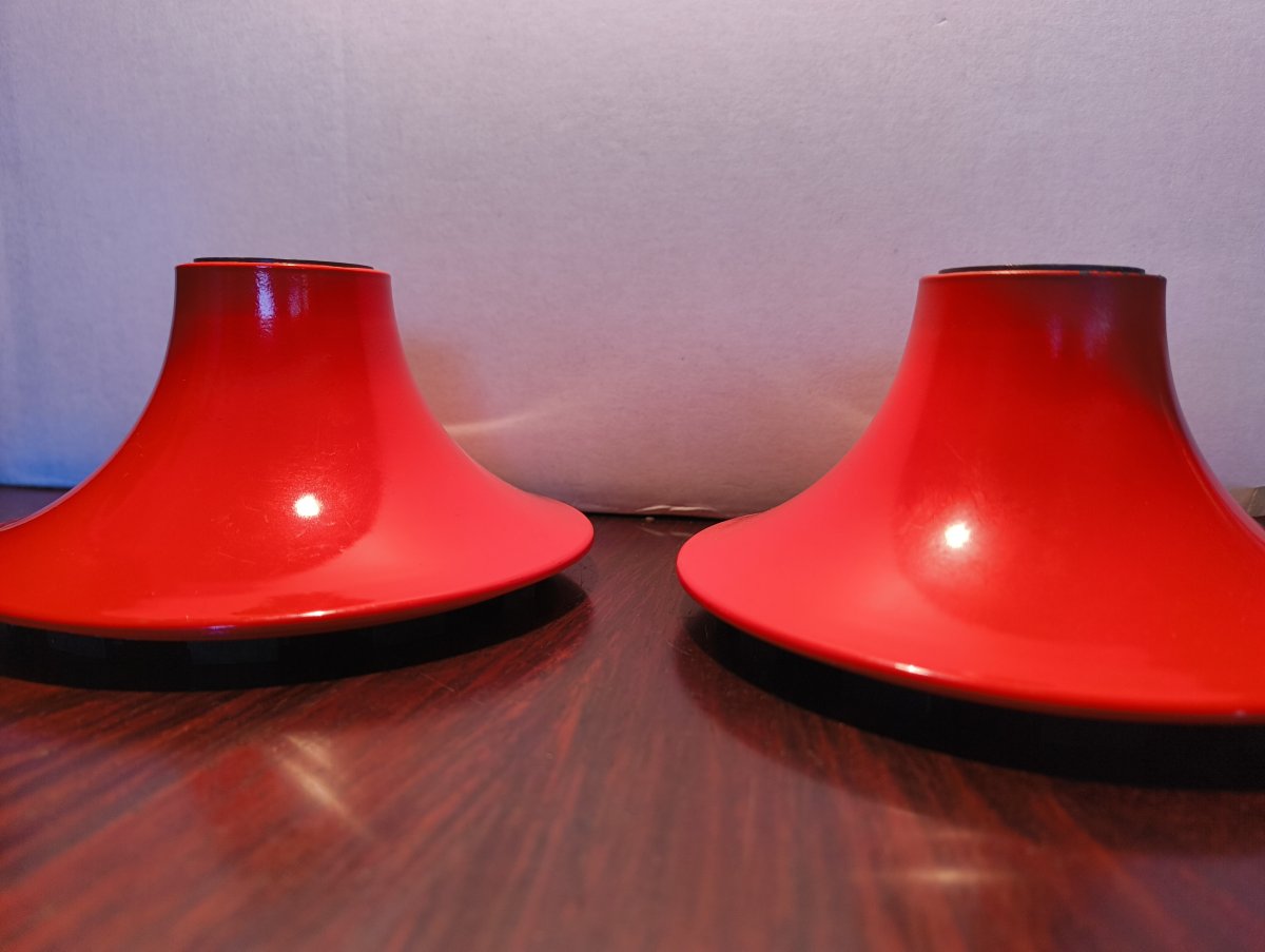 2 schöne Space Age Lampen von Artemide für Wand oder Deckenmontage. Eine davon ist neuwertig und ohne Anschlussdraht und Innenteil der Fassung. Die andere hat ein kurzes Kabel und etwas Gebrauchspuren vor allem von der Hitze der Glühbirne